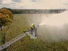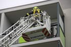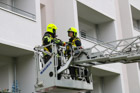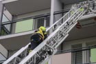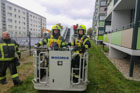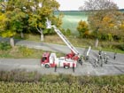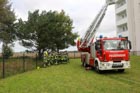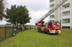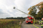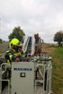 Es wurde das Anbauen und die Handhabung mit der Schleifkorbtrage geübt, worauf muss geachtet werden bei der Aufstellung der DLK, sowie das Aufbauen der Wasserversorgung bis in den Korb der Drehleiter. Natürlich durften auch die Kameraden in die Höhe fahren und mit dem Monitor arbeiten. Zum Abschluss wurde ein Gruppenfoto vor der Drehleiter aufgenommen.