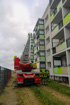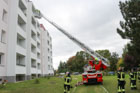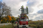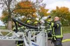 Am 11.10.25 führten wir unsere zweite Ganztagsausbildung in diesem Jahr durch. Dafür kamen die Kameraden Guse und Stern aus der Ortsfeuerwehr Wandlitz mit der DLK (Drehleiter mit abnehmbaren Korb). Die Drehleitermaschinisten zeigten und erklärten uns die Gerätschaften die auf der DLK verlastet sind. Nach einer kurzen Runde welche Erwartungen an die heutige Ausbildung mit der DLK gestellt werden und einem stärkenden Frühstück ging es dann los. Als Erstes fuhren wir zur Mühlenbecker Straße und übten das Anlegen der DLK am 2. Block. Die Drehleitermaschinisten überzeugten sich von der Einschränkung (nach Umbaumaßnahmen) zur Einsetzung der DLK im Einsatzfall und gaben Anregungen für Verbesserungen um im Einsatz ungehindert eine Rettung mit der DLK vornehmen zu können.