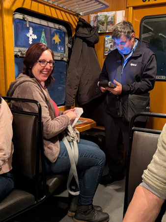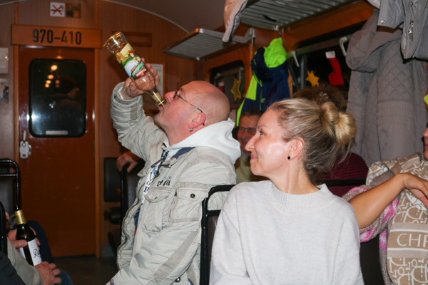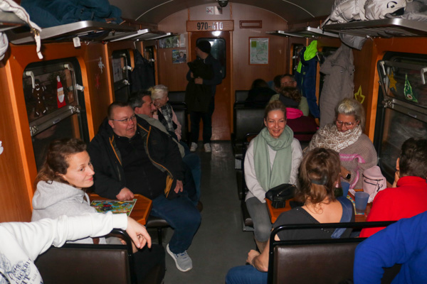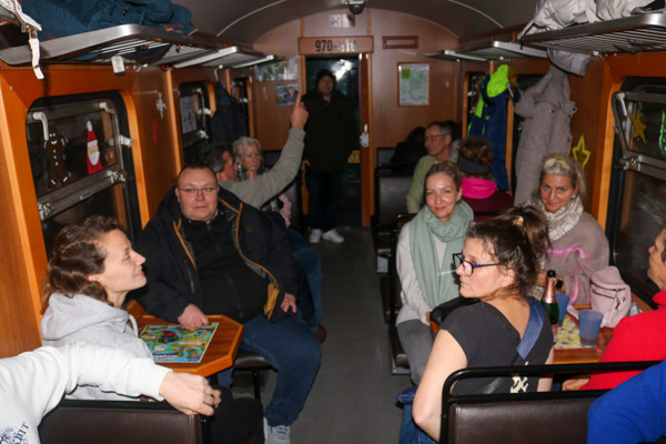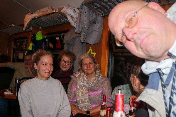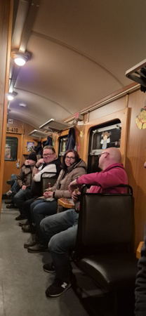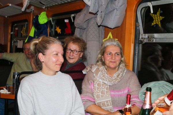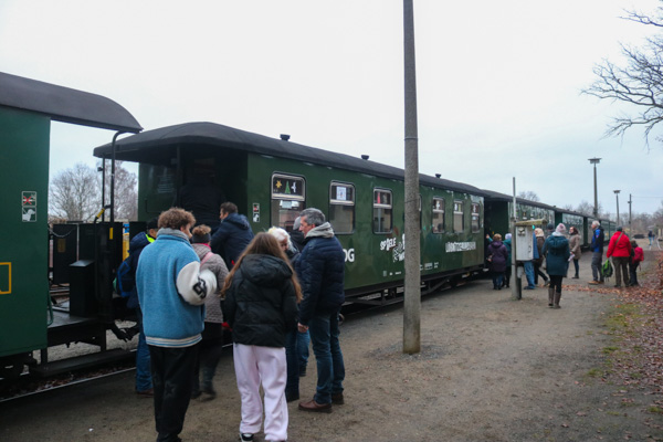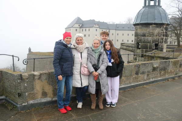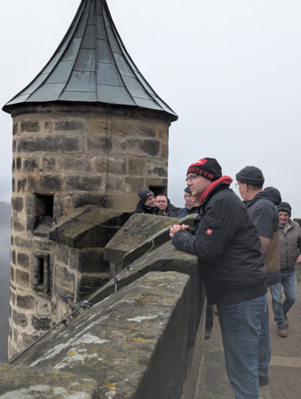 Am Samstag machten wir uns nach dem Frühstück auf zur Festung Königsstein. Dort erwartete uns ein historisch-romantischer Weihnachtsmarkt mit Vorführungen von Handswerkskunst, Bühnenprogramm und eine kulinarische Reise weihnachtlicher Genüsse. Auf dem Rückweg stiegen wir in Radeburg in die Lößnitzgrundbahn um. In unserem eigenen reservierten Abteil ging sie los die wilde Fahrt durch die Wälder, über Moritzburg nach Radebeul Ost, wo uns unser Busfahrer wieder einsammelte.