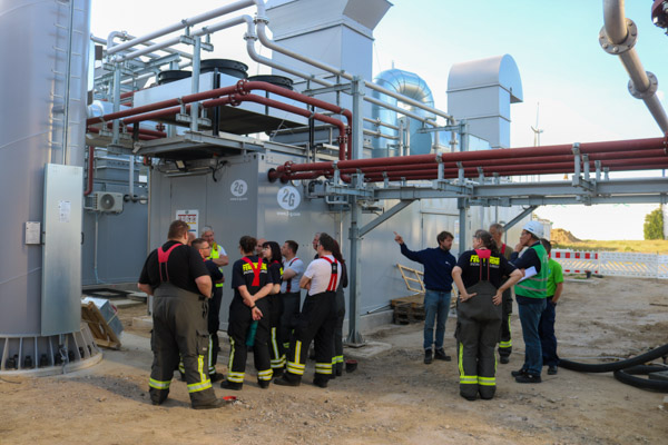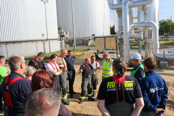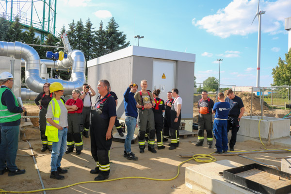 Im Zuge der Fertigstellung der neuen Blockheizkraftwerke auf dem Gelände des Klärwerkes der Berliner Wasserbetriebe wurde die FFW Schönerlinde über die Funktion und mögliche Gefahren informiert.