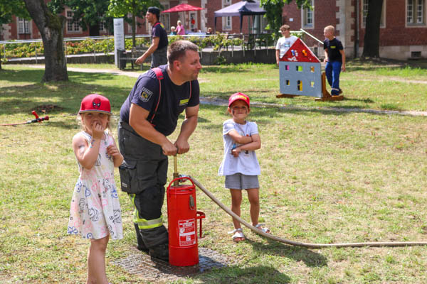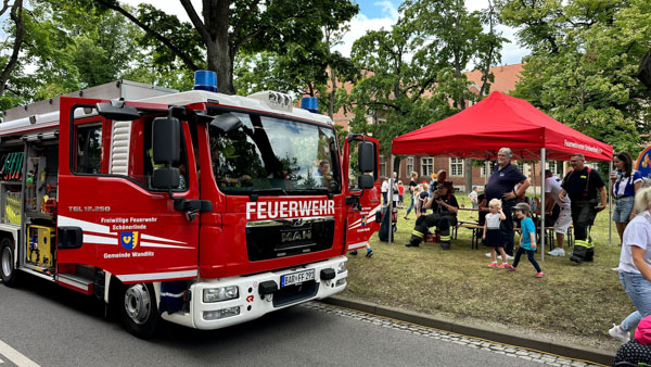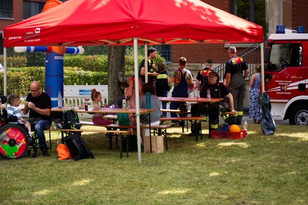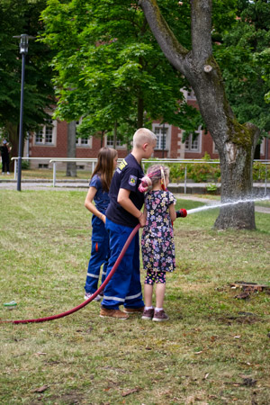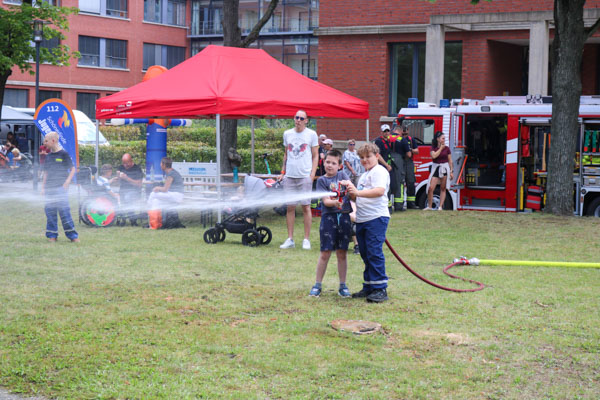Viele Kinder schwärmten davon das sie im Feuerwehrauto sitzen durften und auch einmal einen richtigen Feuerwehrschlauch betätigen durften .